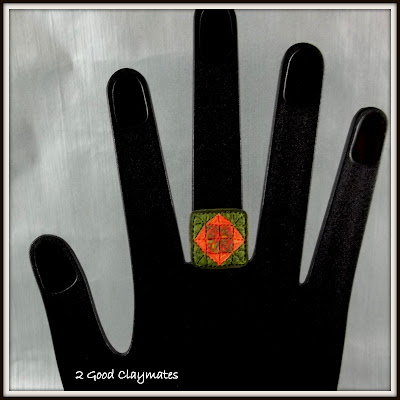 Here are some more "quilt block inspired" rings in a variety of colors and patterns. They were pretty much made the same way as the brooch-pendants but in miniature form.