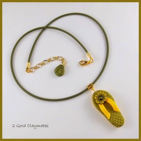 Softglass cord from Shades of Clay as it is very soft and drapes beautifully. Here are some more of our flip flop sandal necklaces all strung on the Softglass cord.