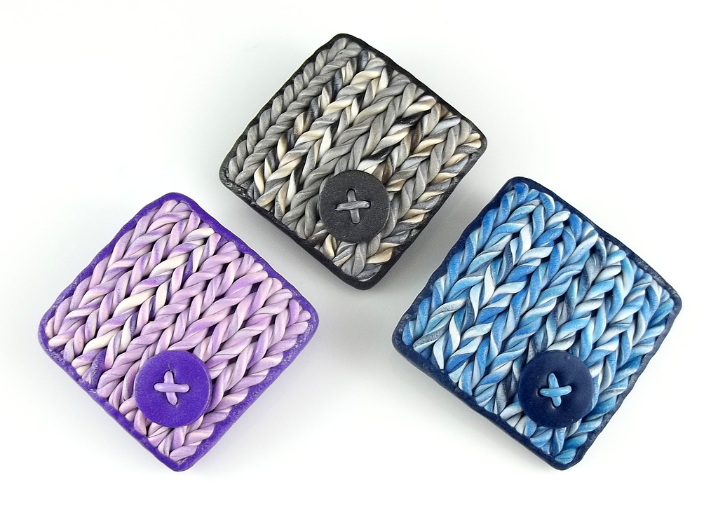 We will also have available our new chunky knits mounted on a snap. These can be worn different ways such as on a shawl stick or as a necklace, etc.