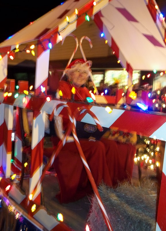 We are still recovering from our fun yet totally exhausting weekend. It started Friday evening with our Chase Country Christmas parade which was pretty impressive for a little village. I have to apologize for the quality of the photos but night photos are very hard to take with moving objects but I wanted to give you a little glimpse of some of the impressive floats, all with the candy cane theme.