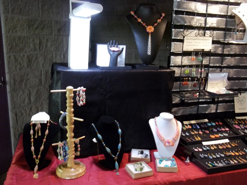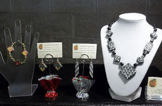 We were up early the next morning (Sunday) for the huge Kamloops Craft-a-Fair. It was a very busy show as usual and very successful. Our new scarf jewelry and stick shawl/sweater pins were well received and we nearly sold out before it was over. (This photo was taken later on so was looking pretty slim after selling more than 2/3's of our inventory!)
