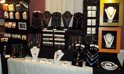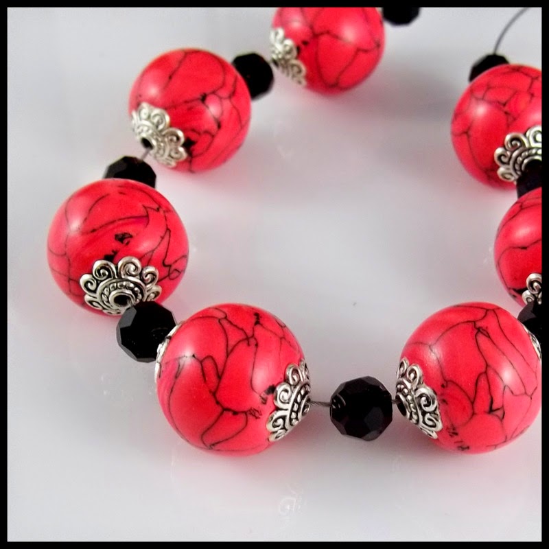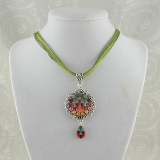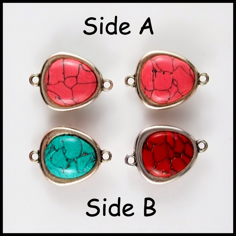 These earring beads are double-sided (see my earlier post here) with the one side in the Strawberry ice and the opposite sides shown below in the green turquoise and the Pantone Fall color, Aurora red.