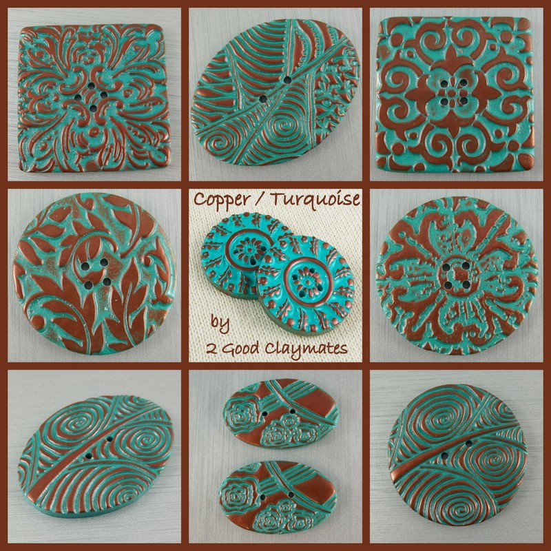 Here is a sampling of a few different button styles all in the same turquoise and copper combination.