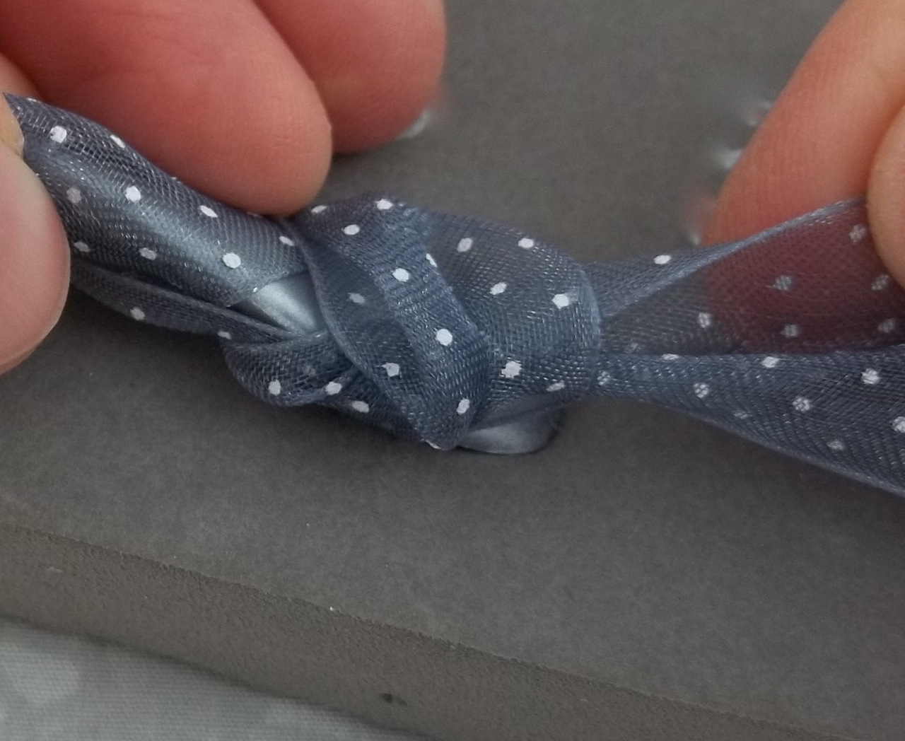 Step 6 - When you get to the end, loop the ribbon around to tie a loose knot but do not tighten it just yet.