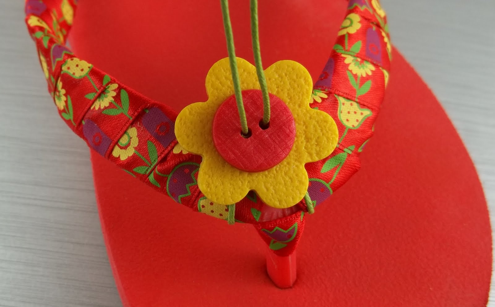 Step 11 - Tie your button on and repeat for the other flip flop.