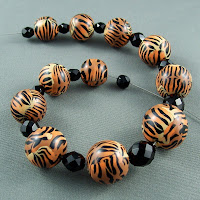 The black and white earrings were also difficult to photograph in the natural light. One nice thing about this particular light box is that it comes with a background cloth that is reversible with blue on one side and grey on the opposite. I used the grey background for the earrings as well as the tiger print beads which give them both a much softer look.