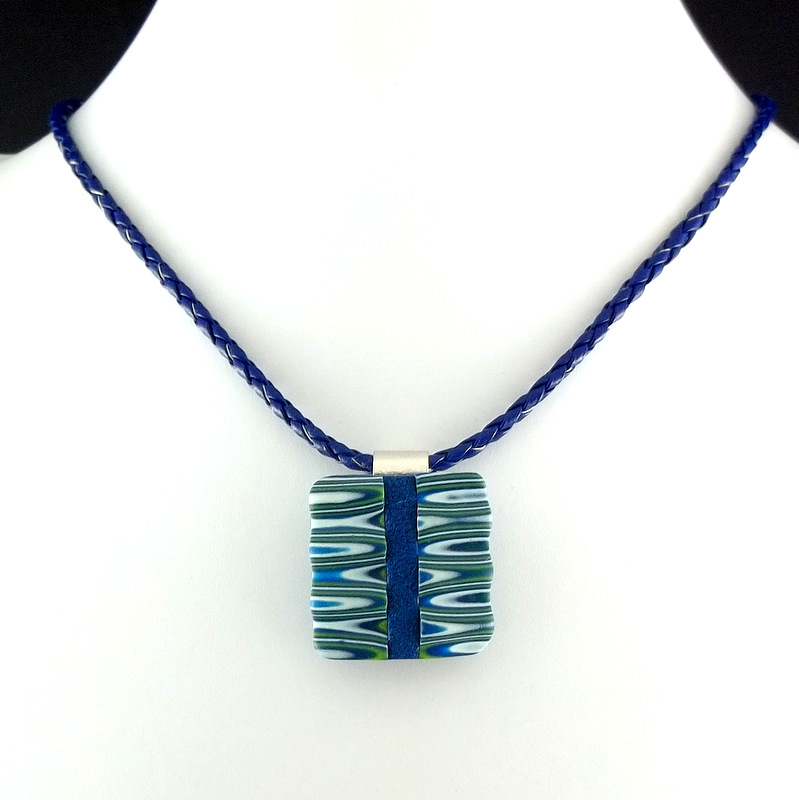 Naturally all of these pieces are mounted on a snap rather than adding a necklace bail or brooch. The snaps are so awesome as the pieces can be interchanged and worn so many different ways. I especially like them on the plain snap pendant with the tube bail that fits onto the thick buna cord. Here it is on the frost white softglass cord from Shades of Clay.