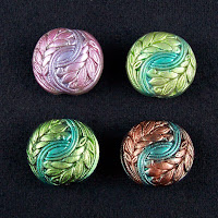 Every so often an idea pops into my head and I can't wait to run to my clay table and try it out to see if it will work. Sometimes it doesn't turn out exactly like I imagined so my technique needs a little tweaking. When I had the idea for these beads I had to test my idea out right away and was so pleased when it actually worked and came out like I hoped. I had to make my moulds first of course and then testing out the moulds so my beads are consistent in shape and size. Then the fun part of applying the various mica powders which give the rich metallic jewel-tone colors that I love. I haven't done a new tutorial in a while so I'm working on a new one for some more inspiration and ideas on how to use these beads.