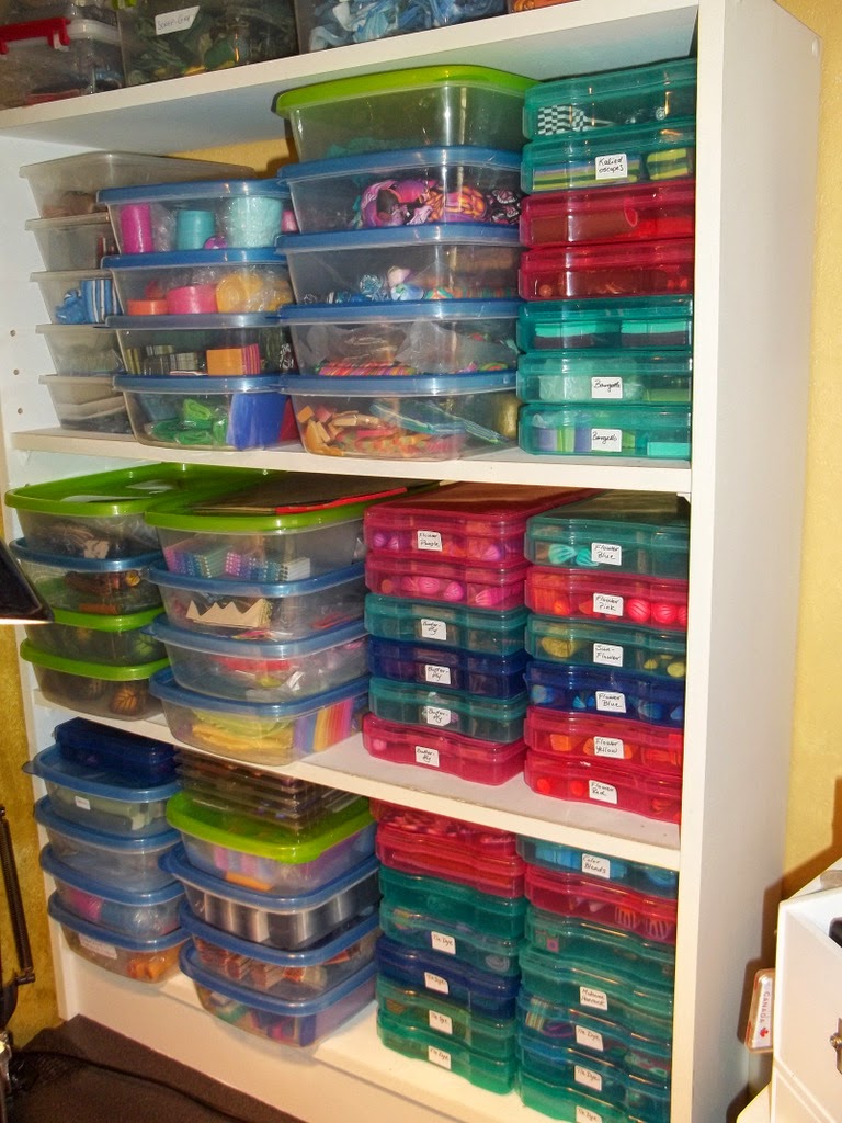 And finally, in the opposite corner of the room, is our large rack for keeping our snap jewelry supplies organized and a new photo booth area with more storage.