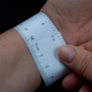 First of all, you need to determine the finished length of your bracelet. Using a cloth or flexible measuring tape, wrap it loosely around your wrist. If you do not have this type of measuring tape you can always print one out. This is your wrist measurement but you do not want the bracelet to fit too tight so add a little extra to a fit you prefer.