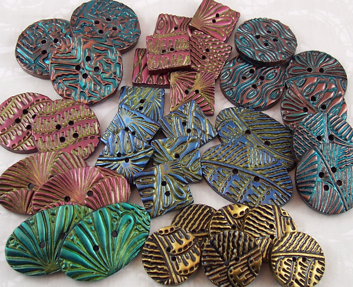 Bake your pieces right on the button forms for 20 minutes at the temperature recommended on your clay package.