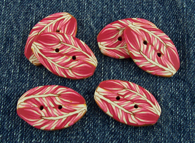 I'm still having fun experimenting with making feather canes and made these buttons from the Honeysuckle pink design I showed you yesterday.