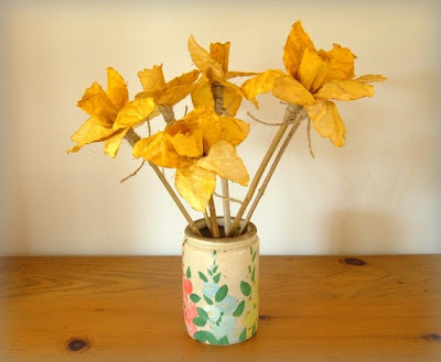This is Deb from Paxton Valley Folk Art.  Her space was across from ours and was really great getting to know her and see her beautiful handmade creations.  She also sells patterns for her original designs as well as fabric flowers like the daffodils shown here.