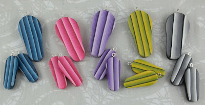 Our flip flop jewelry has a new look this year.  I've been playing around with all types of striped blends and here are a few of the pendants.