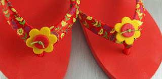 I used this layered method for decorating several pair of flip flops in some bright and cheery colors and are fun to wear at the beach or around town.  (I shared a tutorial on this in my previous post.)