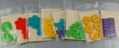I've had requests in the past to make some plain buttons in solid colors and never gave it much thought at the time.  I later came to realize there are not that many types of buttons easily available today that there were years ago.  I started out making a few smaller type buttons in various shapes and colors which then evolved into several more sizes so they can actually be stacked or layered for a fun look.
