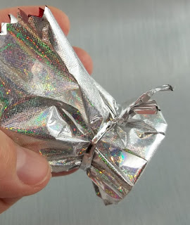 I found some gorgeous metallic laser gift wrap in red which happened to be silver on the opposite side to wrap the card holders in.