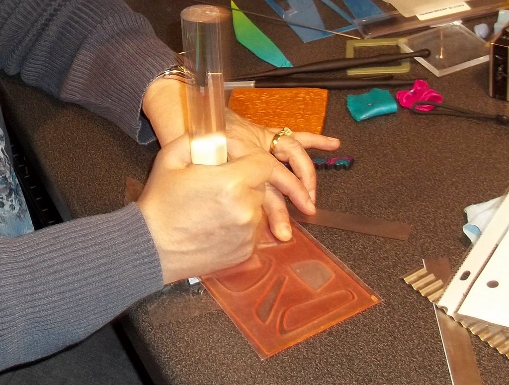 Quite some time ago, a member of our Canadian Clayamies group shared a tip on using these to remove clay stuck to the pasta machine rollers. (I'm sorry I cannot remember who that was). I since discovered they work amazingly well for cleaning the removable blades from the pasta machines such as the modified machines by Mona or the D.R.E.A.M. machine as well. The clay adheres to the pellon-type material making a quick and easy clean-up.